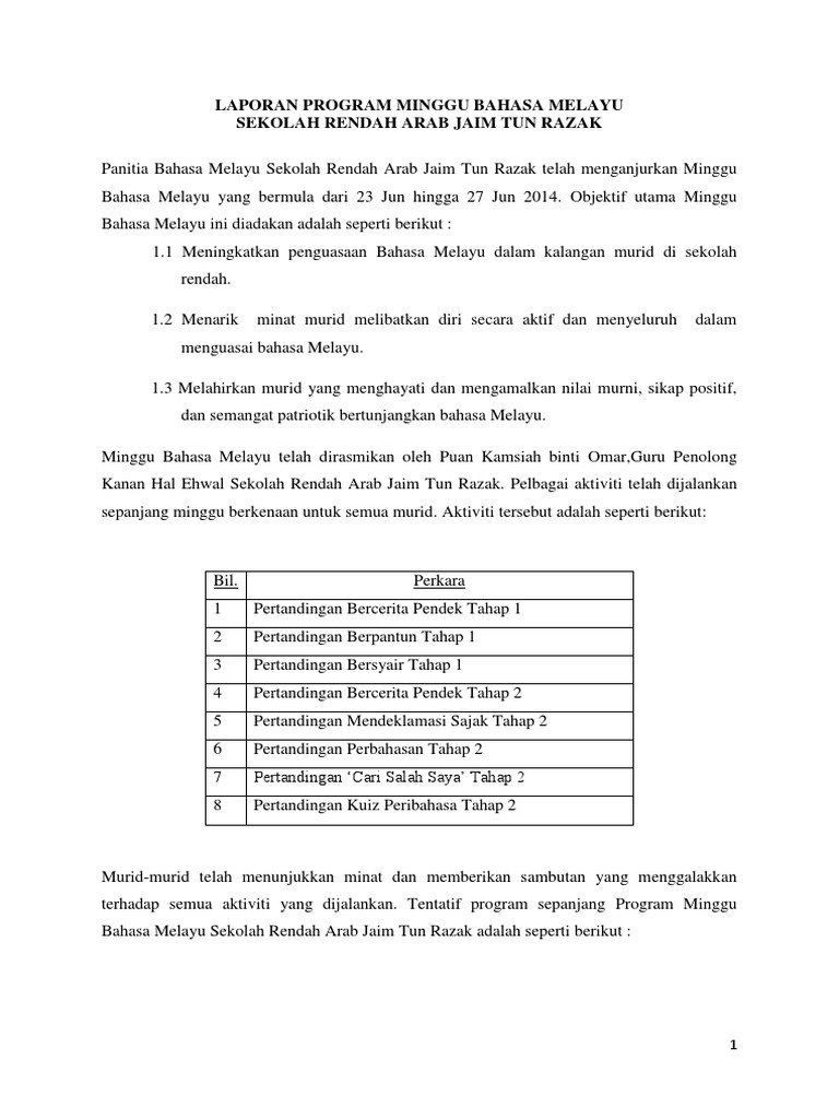 Laporan Minggu Bahasa Melayu Sra Jaim Tun Razak 2014