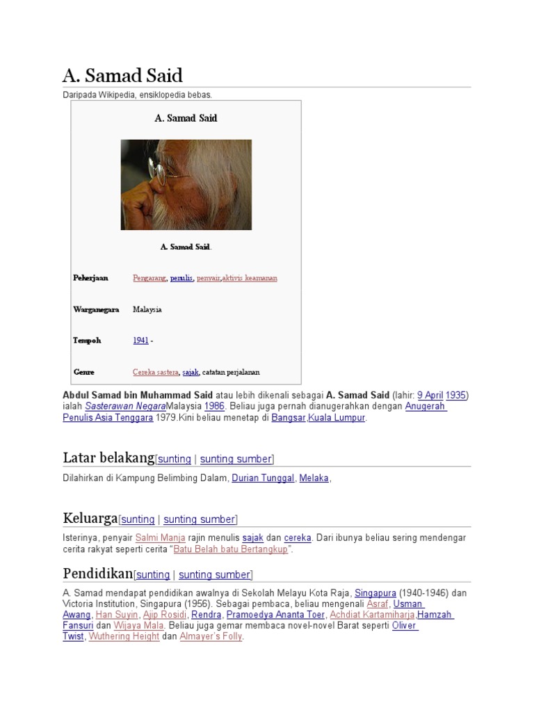 A Samad Said Wikipedia Bahasa Melayu Ensiklopedia Bebas