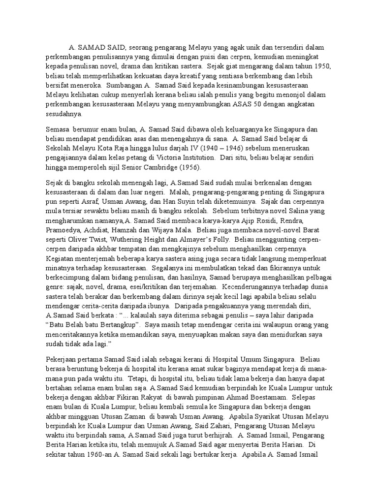 A Samad Said Latar Belakang
