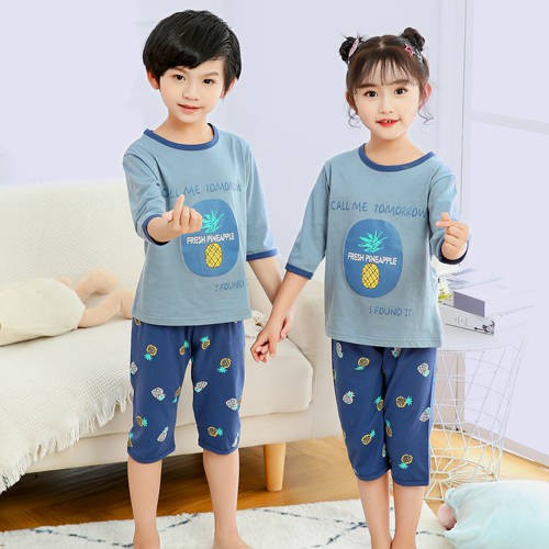 Baju Tidur Budak Perempuan Piyama Musim Bunga Dan Musim Panas Kanak Kanak Sesuai Dengan Perkhidmatan Rumah Lengan Pendek Kanak Kanak Dan Baju Kanak Kanak Lengan Tiga Dan Empat Lengan Baju Kanak Kanak Perempuan Piyama