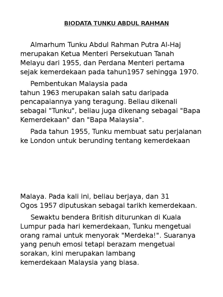 Doc Bapa Kemerdekaan Malaysia Tunku Abdul Rahman Putra Al Haj Biodata Mem Mm Academia Edu