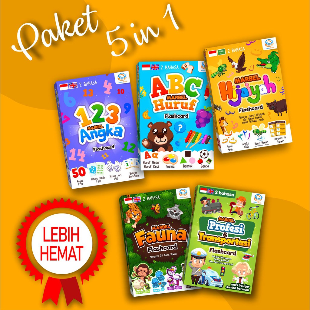 Paket Flashcard 5 In 1 Hemat Angka Huruf Abc Hijaiyah Fauna Profesi Transportasi Shopee Indonesia