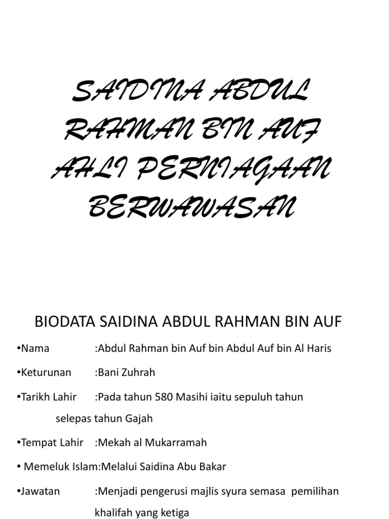 Pel 24 Saidina Abdul Rahman B Auf Ahli Perniagaan Berwawasan
