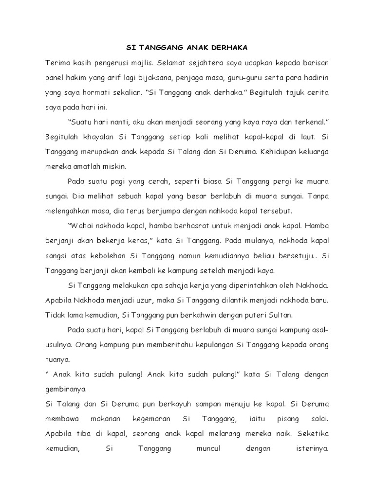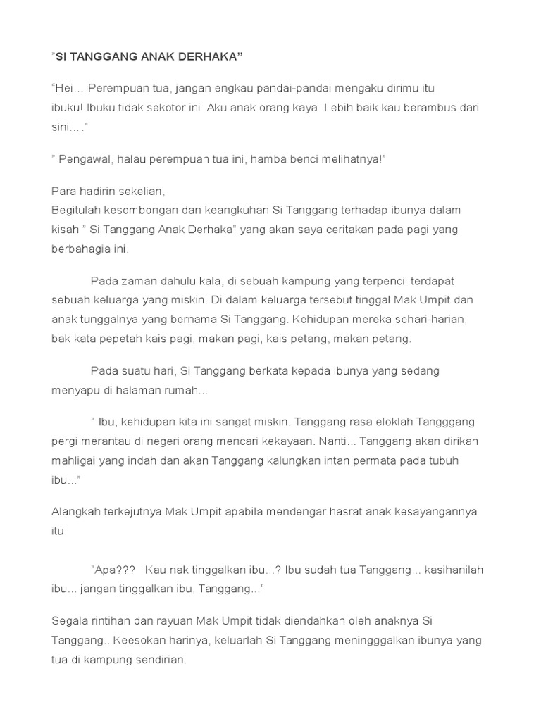 Skrip Cerita Tahap 1 Si Tanggang Pdf Document