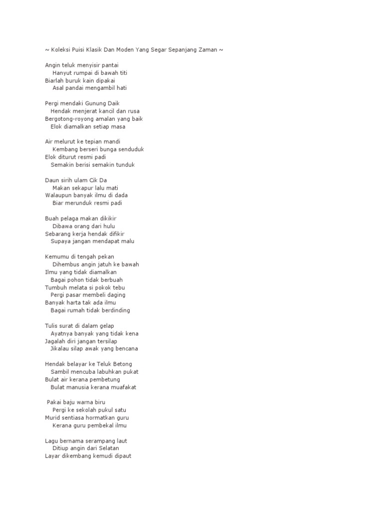 Koleksi Puisi Klasik Dan Moden Yang Segar Sepanjang Zaman