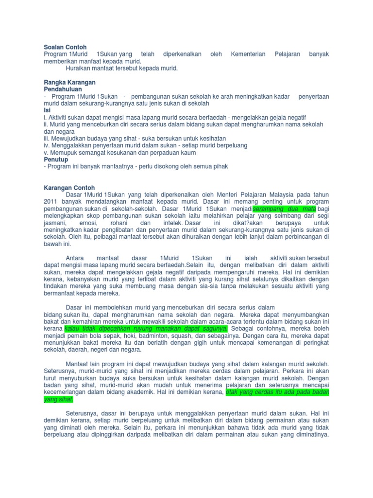 Contoh Karangan Cemerlang Spm Pages 1 23 Text Version Anyflip