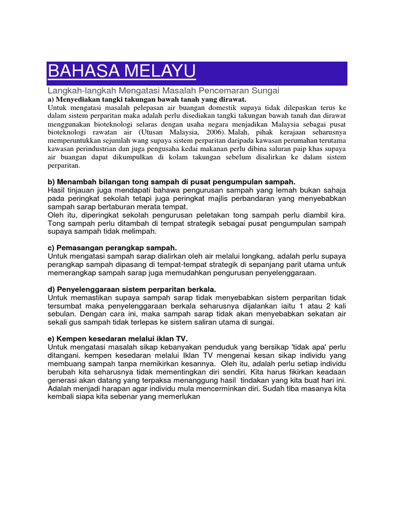 Bahasa Melayu Smk Taman Megah Ria Langkah Mengatasi Pencemaran Sungai
