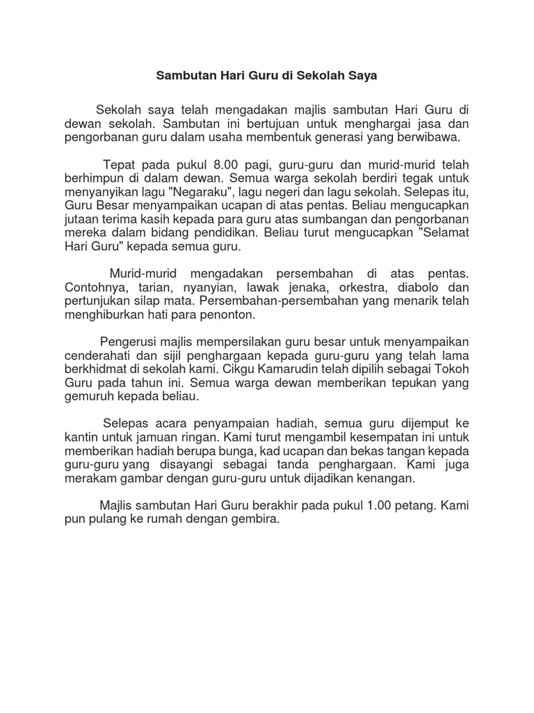 Sambutan Hari Guru Di Sekolah Saya