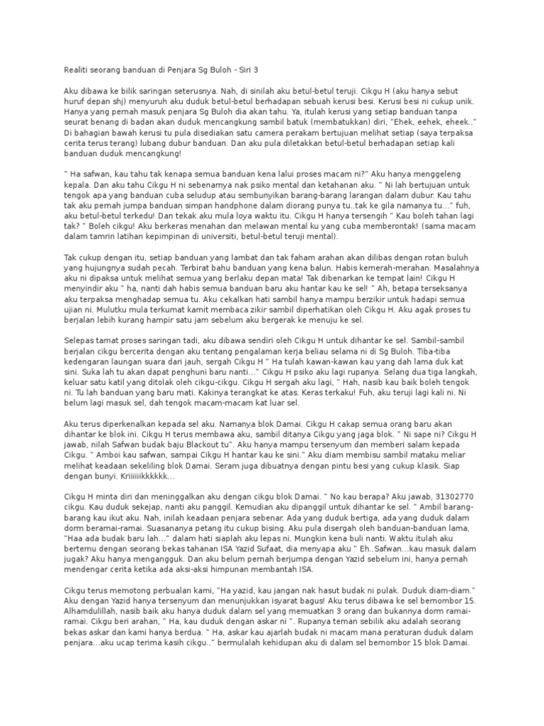 Pengalaman Seorang Banduan Di Penjara Sg Buloh Oleh Safwan Anang